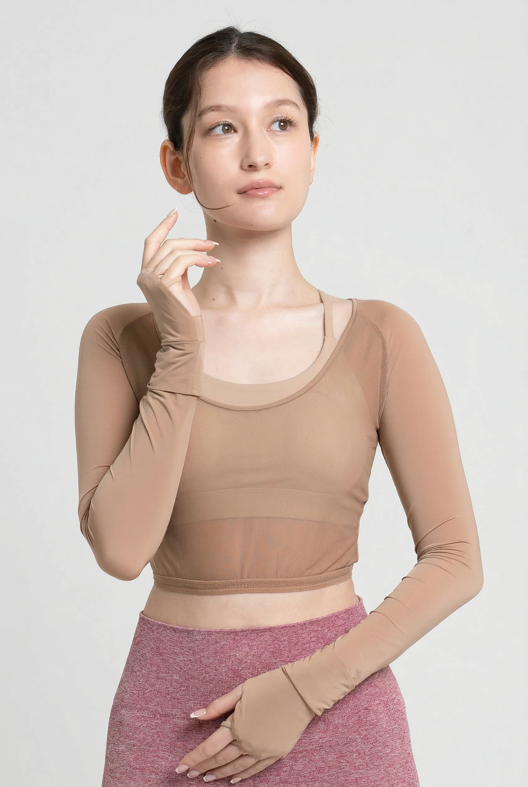 ส่วนตัวผ้าเป็นเนื้อเมชระบายอากาศได้ดีเยี่ยม ส่วนแขนเป็นผ้าสัมผัสเย็นที่ตัดรังสี UV ได้มากกว่า 95% ปกป้องผิวได้อย่างมั่นใจไม่ว่าจะเล่นกีฬาหรือใช้ชีวิตประจำวัน ผ้ายืดหยุ่น 4 ทิศทาง รองรับทุกการเคลื่อนไหวของร่างกาย แกว่งไม้กอล์ฟได้อย่างอิสระ โทนสี Nude ที่กลมกลืนกับผิว ช่วยให้ไม่โปร่งแม้ใส่เสื้อเนื้อบาง ทรงครอปเหมาะสำหรับใส่เป็นชั้นในคู่กับเดรสหรือท็อปทรงสั้น ส่วนยางยืดใต้หน้าอกใช้วัสดุนุ่มพิเศษ ช่วยป้องกันการเลื่อนขึ้นโดยไม่ระคายเคืองผิว